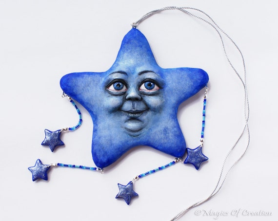OOAK Smiling star sculpture pendant, one of a kind air dry stone clay hanging decoration |
