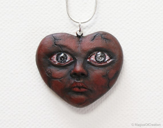 OOAK Handmade air dry clay pendant, one of a kind heart portrait sculpture pendant |