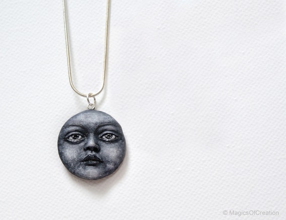OOAK moon portrait sculpture as a pendant, one of a kind air dry stone clay moon pendant completely handmade |